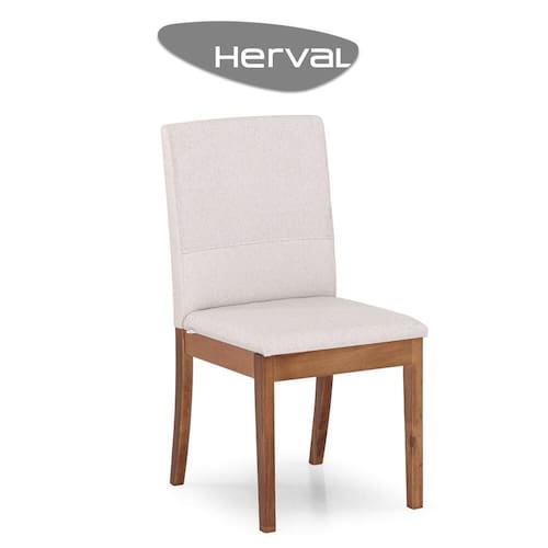 Cadeira de Jantar Herval Peace Madeira Maciça, Linho Cru e Amêndoa