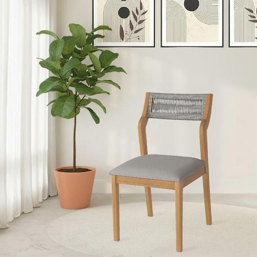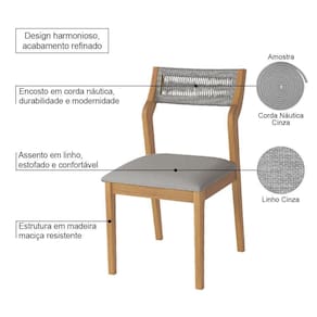 AS IMAGENS SÃO MERAMENTE ILUSTRATIVAS E PODEM SOFRER VARIAÇÕES DE COR E PEQUENOS DETALHES DE ACORDO COM O SEU MONITOR, ILUMINAÇÃO DO AMBIENTE E ATÉ MESMO A SUA PERCEPÇÃO VISUAL.Cadeira de Jantar Lagum Jequitibà Natural Encosto Premium Linho Cinza e Corda NÃutica