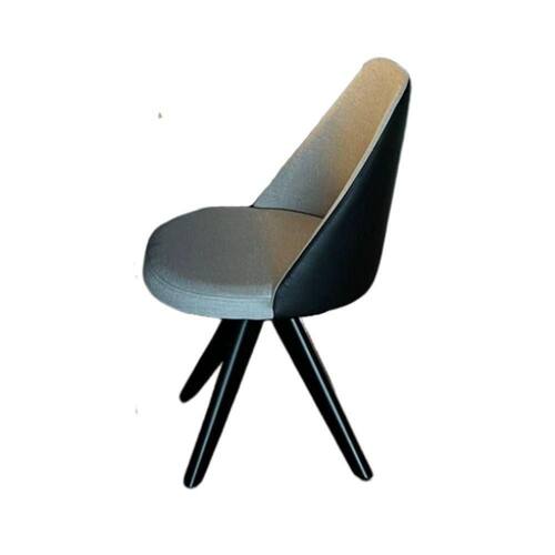 CADEIRA PRETA:Base cor Ébano| Tecido: Linho Cor Cinzacom acabamento em Couro Cor Preto.