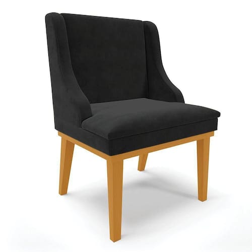 Cadeira De Jantar Liz Suede Base Fixa Madeira Castanho - D'rossi Cor Preto