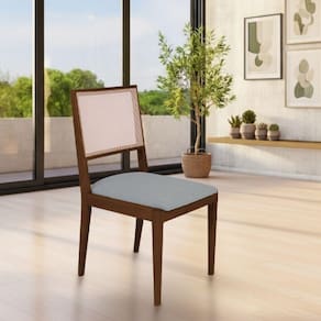 AS IMAGENS SÃO MERAMENTE ILUSTRATIVAS E PODEM SOFRER VARIAÇÕES DE COR E PEQUENOS DETALHES DE ACORDO COM O SEU MONITOR, ILUMINAÇÃO DO AMBIENTE E ATÉ MESMO A SUA PERCEPÇÃO VISUAL.Cadeira de Jantar Suellen em Madeira e Mdf Mel Linho Cinza
