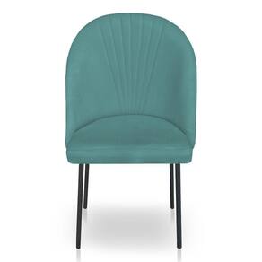 Cadeira De Jantar Virginia Sued Azul Turquesa Pés De Ferro Preto- Dclasse Decor