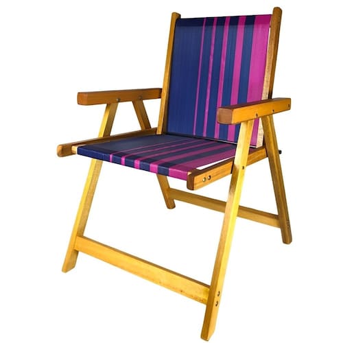 Dobrável e fácil de carregar, a cadeira em madeira é ideal para ser levada para praia, camping ou deixada no seu jardim.