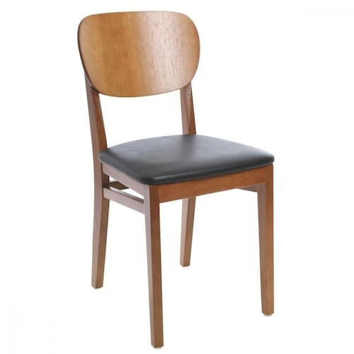 Cadeira de Madeira Tramontina Lisboa em Tauarí Amêndoa com Assento Estofado em Corino Preto sem Braços