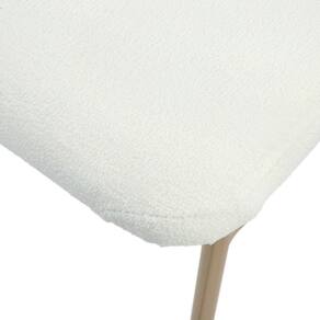 *Estofado com espuma macia. Acabamento da Estrutura: Pintura Almofada do assento: Fixa Altura do assento até o chão: 50 cm Altura dos Pés: 50 cm Ambiente Principal: Cozinha Cor: Dourado/Branco Cor do Produto: Dourado/Branco Cor dos Pés: Dourado Dimensões do assento: 44 x 40 Dobrável: Não Enchimento do Assento: Espuma D-26 Enchimento do Encosto: Espuma D-26 Escala de Brilho: Semi-Brilho Estrutura do Assento: Assento Estofado Estrutura do Encosto: Encosto Estofado Giratória: Não Itens Inclusos: Móvel Linha ou Coleção: Chloe Manual de Montagem e Instalação: https://product-hub-prd.madeiramadeira.com.br/955700/documents/2116c3fb-002c-499a-be3c-a08fd9d175f82404357598117276979133655.pdf Material da Base: Aço Material dos Pés: Aço Material Principal: Aço Necessita Montagem: Não Origem do Produto: Nacional Peso: 8 kg Possui Apoio para Braços: Não Possui Apoio Para os Pés: Não Possui Rodízio: Não Quantidade de Itens: 1 Recomendações de Uso, Manutenção e Limpeza: Na remoção da poeira utilize flanela limpa e levemente umedecida. Não exponha à luz solar e locais úmidos. Não encoste o móvel na parede para evitar transmissão de umidade. Revestimento do Assento: Boucle Revestimento do Encosto: Boucle Tipo de Assento: Fixo Tipo de Encosto: Fixo Marca: Estampaço