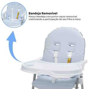 Produto Nacional; Estrutura em Aço; Cadeira alta ideal para bebês de até 23 quilos; Assento e encosto acolchoado em plástico laminado, facilitando a limpeza; Bandeja e apoio de pés; Bandeja removível que permite aproximação a mesa de refeição; Bandeja com porta copos; Cinto de segurança de 5 pontos; Cinto de segurança com 2 regulagem de altura; Fácil de desmontar; Trava de segurança; Cadeira desmontável – embalagem mais compacta; Composição têxtil 100% PVC. A Galzerano é uma empresa com mais de 60 anos de tradição em desenvolver e fabricar produtos para bebês: criar conexões com as famílias desenvolvendo produtos com segurança e design inteligente, entregando conforto e praticidade de geração em geração.
