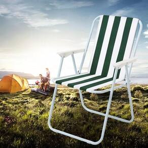 Cadeira De Praia Alta Dobrável Em Metal ? Portátil, Resistente e Não Enferruja! Ideal Para Praia, Jardim, Camping e Piscina