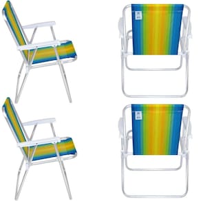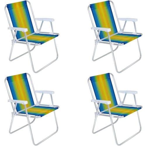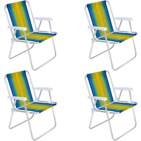 Cadeira de Praia Alta em Alumínio 4 Unidades Degradê Azul, Verde e Amarelo 2242 MOR