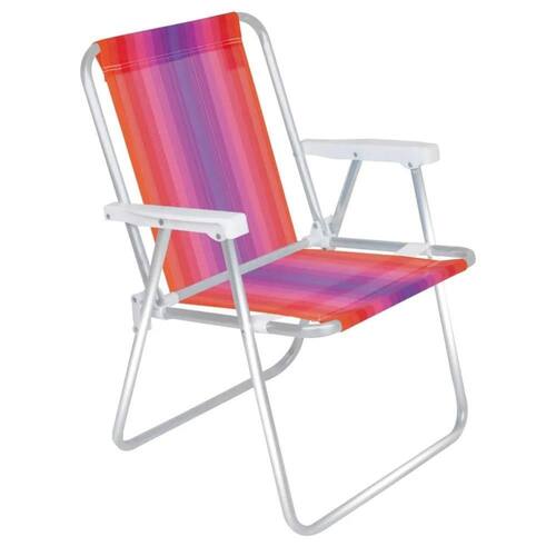 Cadeira de Praia Alta em Alumínio Vermelho com Lilás 2241 MOR