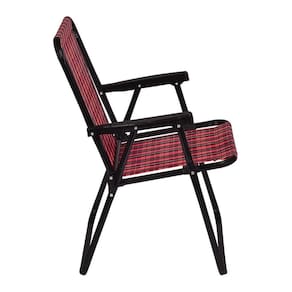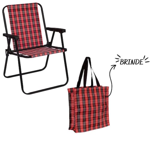 Descrição Dobrável e fácil de carregar, a Cadeira Xadrez é prática e confortável, perfeita para usar na sala de estar, na varanda, no parque e onde mais você quiser. Muito resistente, tem estrutura feita em aço carbono com acabamento em pintura epóxi à pó preta, que proporciona um visual moderno, e peças plásticas em polipropileno, suportando até 110 Kg. Para guardá-la, basta dobrar e colocar em qualquer cantinho da sua casa. Sua tela é produzida em 100% polietileno, estampa: Carmin, irá deixar qualquer ambiente de tirar o fôlego. A combinação perfeita entre funcionalidade, leveza e design moderno para seus momentos de descanso