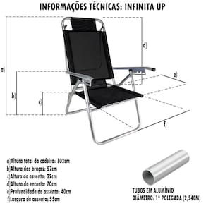 A Cadeira Infinita Up Colors ZAKA foi desenvolvida para proporcionar mais conforto nos seus momentos de lazer, é uma cadeira mais alta do chão, com 5 posições diferentes, possui estrutura e dobradiças em alumínio, garantindo maior durabilidade. É indicada para pessoas com até 120kg. Fabricada em alumínio de alta resistência e que não enferruja, tecido BMDNET, soldado eletronicamente, sem costuras. Braços em alumínio com 5 posições. Atende público exigente, com alto padrão de qualidade. Além disso, é ótima para tomar sol tanto na praia como piscina, proporcionando ótimos momentos de lazer. Diferencial: a marca ZAKA é reconhecida por ser uma marca de qualidade. Todos os produtos são revisados e testados. A cadeira Infinita Up Colors é muito mais resistente. Utilizamos os melhores componentes e insumos do mercado.