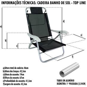 A Cadeira Top Line Alumínio ZAKA foi desenvolvida para proporcionar mais conforto nos seus momentos de lazer, é uma cadeira tradicional com 5 posições diferentes, possui estrutura e dobradiças em alumínio. É indicada para pessoas com até 120kg. Fabricada em alumínio de alta resistência e que não enferruja, tecido BMDNET, soldado eletronicamente, sem costuras. Possui braços injetados, possui almofada anatômica e acompanha porta copo. Atende público exigente, com alto padrão de qualidade. Além disso, é ótima para tomar sol tanto na praia quanto na piscina, proporcionando ótimos momentos de lazer. Diferencial: a marca ZAKA é reconhecida por ser uma marca de qualidade. Todos os produtos são revisados e testados. A Top Line Alumínio é muito mais resistente. Utilizamos os melhores componentes e insumos do mercado.