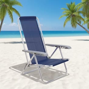 Para curtir momentos deliciosos ao sol, conte com a cadeira de praia reclinável Tramontina Bali baixa em alumínio. Perfeita para momentos de lazer na praia, piscina ou acampamento, ela tem capacidade para 100 quilos e possui um regulador de encosto com quatro posições diferentes, o que garante maior conforto e bem-estar para suas horas de descanso. A estrutura da cadeira é em alumínio, seu acabamento é todo na cor cinza e sua tela é na cor azul escuro e laranja, o que garante uniformidade visual, modernidade e exclusividade no design, que é inspirado na ilha de Bali!