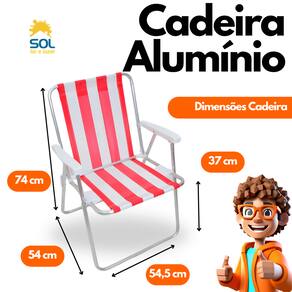 Estrutura em alumínio resistente à corrosão: leve, durável e ideal para ambientes úmidos. Tecido 100% polietileno respirável: conforto mesmo em dias quentes. Tira reforçada no assento: mais segurança e estabilidade. Design dobrável: fácil de transportar e armazenar. Medidas compactas e ergonômicas: 54cm x 54,5cm x 73cm – altura elevada para máxima comodidade. Resistência à água: perfeita para praia, piscina, jardim e camping.