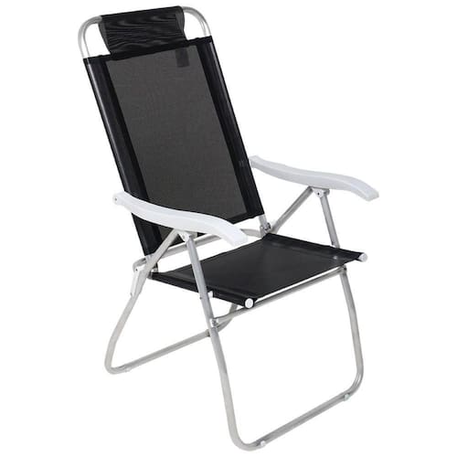 Especificações Estrutura: Alumínio Reclinável: 4 posições Material da Tela: 100% Poliéster com Revestimento em PVC Apoios de Braço: Polipropileno Peso Máximo Suportado: 120kg Medidas da Cadeira: 70 cm x 57 cm x 1,14m Itens Inclusos Cadeira de Praia Reclinável Mormaii Prosa Preta Bel Perguntas Frequentes (FAQ) Pergunta: A cadeira é fácil de limpar?