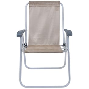 Especificações Material da Estrutura: Alumínio Material da Tela: 100% Poliéster com Revestimento em PVC Altura do Assento: 41 cm Cor: Bege com Apoios de Braço Cinza Peso Suportado da Cadeira: 120kg Medidas da Cadeira: 58 cm x 57 cm x 90 cm Itens Inclusos Cadeira de Praia Relax Comfort Alta em Alumínio Bege Bel Perguntas Frequentes (FAQ) Pergunta: A cadeira é resistente à água?