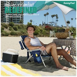 Extremamente Confortável e Compacto: A cadeira de praia reclinável de 5 posições com encosto alto oferece uma experiência de assento incrivelmente confortável. Basta ajustar o encosto no ângulo que preferir, prendendo o apoio de braço, e relaxar enquanto desfruta da brisa. O tamanho compacto quando dobrada (80 x 55 x 6,6 cm) economiza espaço quando não está em uso.