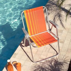Cadeira De Praia Samoa Alta Em Alumínio Com Assento Laranja E Amarelo - 92900001 - Tramontina Cadeira de Praia Samoa Alta em Alumínio com Assento Laranja e Amarelo - 92900001 - TRAMONTINA Descrição: Com a cadeira de praia Tramontina Samoa Alta em alumínio com assento laranja e amarelo você terá momentos de lazer deliciosos à beira-mar, piscina ou num acampamento com os amigos. Desenvolvida com estrutura em alumínio e assento reforçado, ela garante alta resistência, suportando 110 quilos. Seu design é inspirado na ilha de Samoa e ela conta com acabamentos na cor cinza, que entregam um acabamento impecável e uniformidade visual ao item. A cadeira tem tela na cor laranja e vai garantir um toque descontraído para seus momentos de lazer!