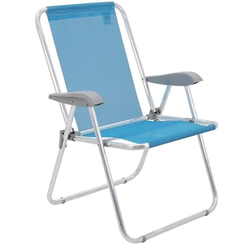 - Garanta momentos deliciosos à beira da praia, piscina ou acampamento, com a cadeira de praia Tramontina Creta Master em alumínio com assento azul.