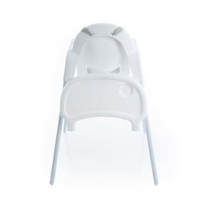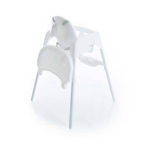 Para isso, remova a bandeja e acomode a cadeira alta junto à mesa de refeição. Prenda a bandeja na parte traseira da cadeira quando não estiver utilizando-a.