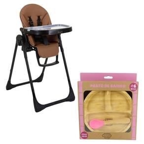Conteúdo da Embalagem: 1 Cadeira de Refeição Prima Pappa Zero 3 Caramelo - Burigotto 1 Prato Infantil de Bambu com Ventosa Rosa - Turminha Alves Baby