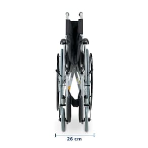 Suporta até 120 kg; Vai com você para todo lugar: cabe em qualquer porta-malas, inclusive de carros mais compactos Assento e encosto acolchoado; Aro de propulsão em aço carbono, ultraresistente; Duplo X em aço carbono garante maior robustez; Possui registro na Anvisa e é certificada pelo Inmetro.