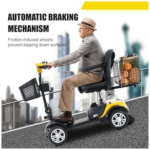 Operação Fácil e Segura: O painel de controle permite ajustar a velocidade, alternar a direção para frente ou para trás e ligar/desligar a luz de direção. Com o scooter elétrico de 4 rodas, os controles ficam ao alcance das mãos. As rodas anti-queda traseiras mantêm a estabilidade diante de obstáculos. As luzes dianteiras e traseiras permitem dirigir com segurança à noite.