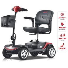 Principais Parâmetros - O scooter Metro Mobility, equipado com motor potente de 300 W, tem alcance de até 16 km por carga. Projetado para suportar até 136 kg com segurança, o scooter elétrico possui pneus sólidos de 23 cm, garantindo durabilidade e segurança. O raio de giro é de 108 cm e a inclinação máxima é de 8°.