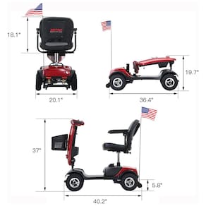 Portátil: Fácil de montar, desmontar e transportar. O scooter de mobilidade pode ser desmontado em 4 partes facilmente, sendo que a peça mais pesada tem 28,5 kg (base do scooter). Pode ser colocado no porta-malas do seu carro, ideal para viagens.