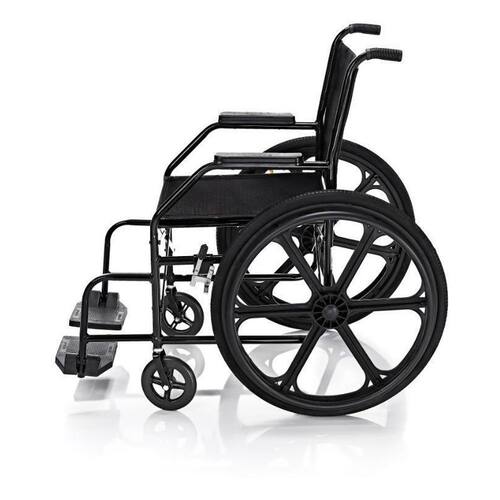 Cadeira de Rodas Prolife PL 001 Informações técnicas: Fabricada em tubos de aço carbono com encosto e assento duplo em nylon, encosto com tubo 7/8; Dobrável em X, freios com manopla bilaterais dianteiro com regulagem; Aro impulsor bilateral em nylon injetado; Apoio para os braços fixo com apoio em nylon injetado; Apoio para os pés fixos com barra de reforço, com pedal em nylon injetado rebatível lateralmente; Rodas dianteiras aro 6 com pneus maciços; Rodas traseiras aro 24 em nylon injetado, com pneus maciços PL 001 , com rolamento duplo blindado, garfos em aço carbono achatado e maciço, pintura epóxi eletrostática . Medidas e capacidade: Largura do assento: 40cm; Altura do assento no chão: 53cm; Largura total aberta: 63cm; Peso da cadeira: 12Kg; Capacidade de peso: 90Kg. Homologação Anvisa: 80336090004 Ean: 7897270163022