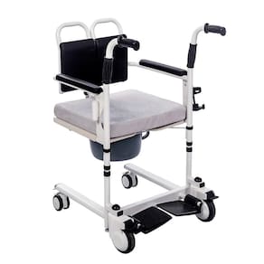Cadeira de transferência multifunc com manivelas - montserrat Tamanho: único Cadeira de transferência e higiênica jl2000 montserrat A cadeira de transferência e higiênica jl2000 é a escolha ideal para quem precisa de uma cadeira resistente e versátil para a realização de atividades cotidianas. Com sua estrutura em aço, ela garante durabilidade e segurança durante a transferência do usuário. Conforto: seus apoios de braços, costas e apoios dos pés em pvc, aliados a uma almofada de espuma macia para o assento, proporcionam conforto e praticidade durante o uso prolongado. Higiênica: pode ser utilizada também como cadeira higiênica, para usuários que tem maior dificuldade em usar o banheiro. Possui balde coletor de plástico para que possa realizar a coleta de maneira fácil e eficiente. Estrutura reforçada: fabricada em aço carbono, a cadeira possui uma estrutura que suporta o peso de até 100kg, tornando a cadeira capaz de atender as necessidades de uma ampla variedade de usuários. Regulagem de altura: conta com um sistema de regulagem de altura manual, através de pino trava na haste principal do assento. Dessa forma, é possível acomodar o usuário sem se preocupar com a altura do leito onde ele se encontra. A altura do assento é ajustável entre 44cm até 60cm, permitindo que a cadeira seja adaptada às necessidades de cada usuário. Mobilidade: seus freios de pé, rodas dianteiros de 5 polegadas e rodas traseiras de 3 polegadas permitem um deslocamento suave e silencioso em ambientes internos e externos, além de garantir segurança durante a transferência do usuário. Somados aos benefícios citados, a cadeira tem de 12 meses, oferecendo ainda mais tranquilidade e segurança. Invista na cadeira de transferência e higiênica jl2000 montserrat e garanta praticidade, conforto e segurança em suas atividades diárias. Este produto não é uma cadeira de banho. Não deve ser utilizada para essa finalidade Características Estrutura em aço; Apoio de braço, costas e assento em pvc; Rodas dianteiras de 5 com freios de pé; Rodas traseiras de 3 com freios de pé; Apoio de pés em plástico; Acompanha balde coletor com tampa; Capacidade de carga: 100kg; Peso da cadeira: 18kg; Almofada para mais conforto. Observações O produto não é uma cadeira de banho. Não deve ser molhada; Produto de regulagem manual. Para evitar acidentes, não regular altura do assento enquanto usuário estiver acomodado nela; Cadeira não projetada para utilização sozinho. O usuário deverá utilizá-la sempre acompanhado de outra pessoa. Registro anvisa: 80153030120 : 12 meses contra defeito de fabricação.