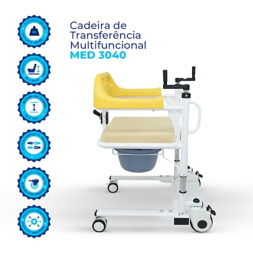 Conquiste mais autonomia e praticidade com a Cadeira de Transferência Multifuncional MED 3040, a aliada ideal para quem busca segurança, leveza e eficiência no cuidado diário. Desenvolvida especialmente para facilitar a mobilidade de pessoas com limitações físicas, ela oferece uma solução confiável e funcional para a transferência entre cama, sofá e banheiro, promovendo mais conforto ao usuário e reduzindo o esforço do cuidador.