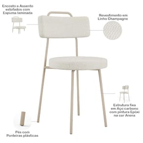 Altura da cadeira: 98cm | Altura do assento a partir do solo: 48 cm | Color: Champagne | ColorFamily: Bege | ColorSimple: Bege | ColorSupplier: Champagne | Cor: Champagne | Cor da estrutura da cadeira: arana | Cor do assento: Camel | Cor do estofamento: Champagne | Desenho do tecido: não contem desenho | É cadeira de balanço: Não | É dobrável: Não | É empilhável: Não | Espessura do assento: 6 cm | Fabricante: Lyam Decor | Firmeza: Sim | Largura da cadeira: 46cm | Largura do assento: 6 cm | Material: espuma laminada, aço carbono e plastico | Material do estofamento: Espuma Laminada | MaterialFamily: espuma laminada, aço carbono e plastico | Model: Barcelona | OriginCountry: Brasil | OriginState: PR | Peso máximo suportado: suporta até 120 kg | ProductContents: 1 Cadeira | ProductHeight: 98cm | ProductInstructions: Produto para uso residencial em ambiente interno, não devendo ficar exposto diretamente ao sol, calo | ProductLength: 63cm | ProductWarranty: 90 dias após o recebimento do produto | ProductWeight: 6 kg | ProductWidth: 46cm | Profundidade da cadeira: 63cm | Profundidade do assento: 42 cm | Requer montagem: Sim, a montagem é simples mas sugerimos a contratação do nosso serviço de montagem (para os CEPs em | SizeDescription: Peso: 6 kg, Altura: 98 cm, Largura: 46 cm | SupplierSimpleName: Cadeira Decorativa Estofada Para Sala De Jantar Barcelona Arena L02 Linho Champagne - Lyam | Tempo de montagem: na