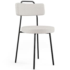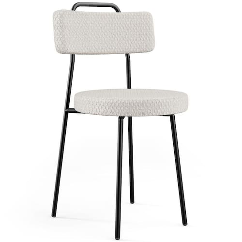 É cadeira de balanço: Não se aplica | Desenho do tecido: Não se aplica | Cor da estrutura da cadeira: Preto | Cor do estofamento: Cru | Cor do assento: Bouclê Cru | Material do estofamento: Espuma Laminada