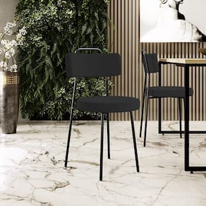 Amplamente moderna, dispondo de muito realce e design singular, a Cadeira Decorativa Estofada Para Sala De Jantar Barcelona L02 Bouclê Preto - Lyam Decor vem com a personalidade e elegância que sua decoração merece! Estruturada em aço carbono, contrasta lindamente com o encosto e assento estofados, cabe mencionar ainda seu revestimento em Couríssimo, é confeccionada por materiais de excelente qualidade, extremamente resistentes e aconchegantes.