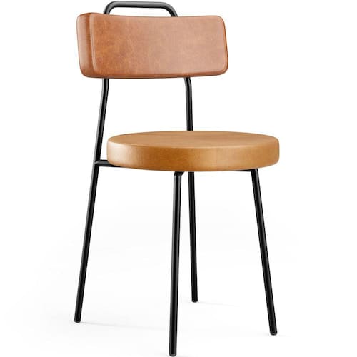 Revestimento do encosto em Couríssimo na cor Camel e do assento em Couríssimo na cor Whisky, com acabamento semi brilho.