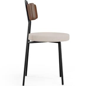 Revestimento do encosto em Couríssimo na cor Marrom e do assento em Linho na cor Bege, com acabamento semi brilho.