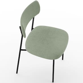 Encosto e assento estofados com espuma laminada. Estrutura fixa em aço carbono com pintura epóxi na cor preto. Revestimento em Bouclê na cor Oliva. Peso suportado: Até 120 kg.