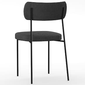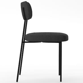 Encosto e assento estofados com espuma laminada. Estrutura fixa em aço carbono com pintura epóxi na cor preto. Revestimento em Bouclê na cor Preto. Peso suportado: Até 120 kg.