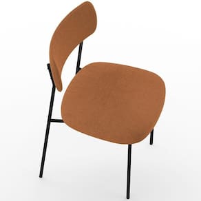 Encosto e assento estofados com espuma laminada. Estrutura fixa em aço carbono com pintura epóxi na cor preto. Revestimento em Bouclê na cor Terracota. Peso suportado: Até 120 kg.