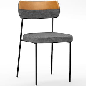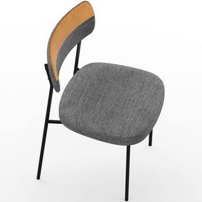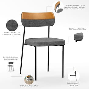 Encosto e assento estofados com espuma laminada, revestidos em Linho Cinza Escuro e Couríssimo Whisky .