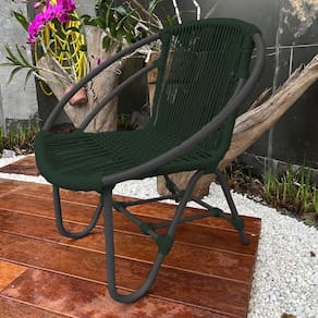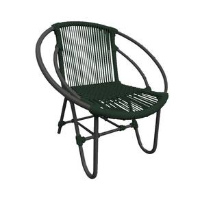 Cadeira Decorativa Julia em Corda NÃutica e Base em AlumÃnio Preta/verde Musgo