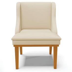 Cadeira Decorativa Sala De Jantar Base Fixa De Madeira Firenze Pu Bege/castanho G19 - Gran Belo