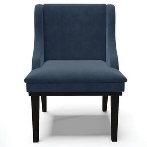 Cadeira Decorativa Sala De Jantar Base Fixa De Madeira Firenze Suede Azul Marinho/preto