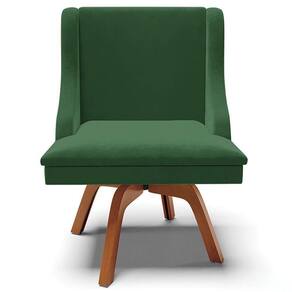 Cadeira Decorativa Sala De Jantar Base Giratória De Madeira Firenze Veludo Verde/natural G19 - Marrom