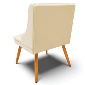 Cadeira Decorativa Sala De Jantar Pés Palito De Madeira Firenze Pu Bege/natural G19 - Gran Belo