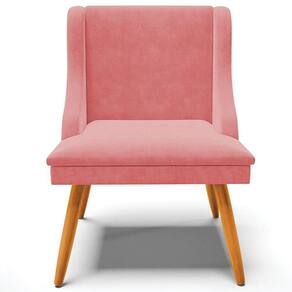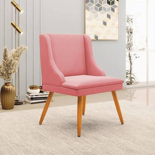 Cadeira Decorativa Sala De Jantar Pés Palito De Madeira Firenze Suede Rosê/natural G19 - Gran Belo