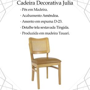 Cadeira Decorativa Tela Tingida Pés Madeira Amêndoa, traz o conforto que você merece, levando muito mais harmonia e leveza para seus espaços. Estrutura produzida com madeira de tauari proporcionando maior durabilidade e resistência à peça. Composta por pés em madeira com acabamento em amêndoa, encosto com detalhe em tela tingida, assento em espuma D-23. Suportando até 120 kg. Possui design inovador, proporcionando graciosidade e elegância em seus ambientes, ideal para compor sua sala de jantar, sala de estar e cozinha. Este móvel chegará em sua casa separado em 01 volume.