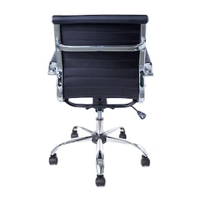 A Cadeira Giratória Charles Eames Esteirinha possui um misto de design e conforto, compondo um escritório super charmoso e confortável. O assento e o encosto em couro P.U. e os braços fixos (não possuem regulagem de altura) também são revestidos em PU garantindo maior durabilidade.
