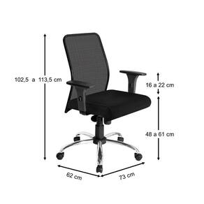 Base giratória cromada com relax e regulagem de altura com sistema a gás. Encosto de Tela 100% Poliéster extra forte com resina anti-encolhimento. Assento com Espuma Injetada D-45, extra conforto com alta qualidade. Tapeçada com tecido espumado extra macio.